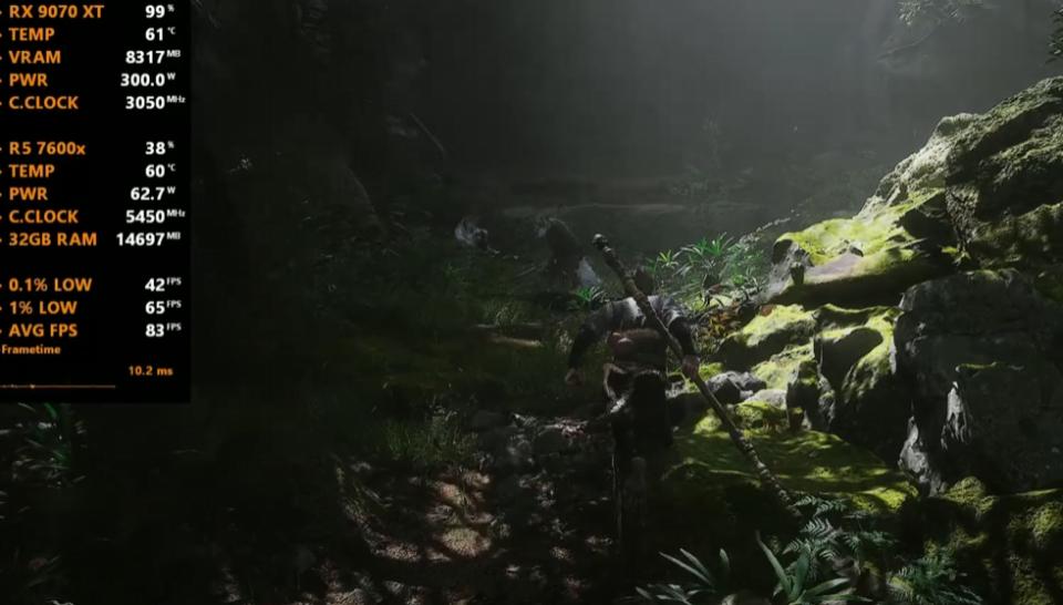 整体来看,Ryzen 5 7600X+Radeon RX 9070 XT这套配置在多数时候都没有问题,显卡的性能可充分发挥释放,不过在少部分游戏中,显卡的性能发挥并不充分。