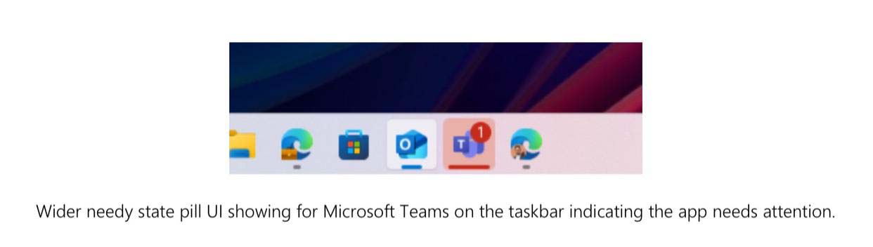 微软对任务栏的图标进行调整,例如 Teams 图标的闪烁提醒现在“更明显、更宽”。