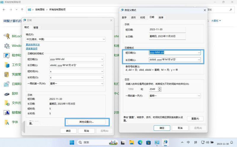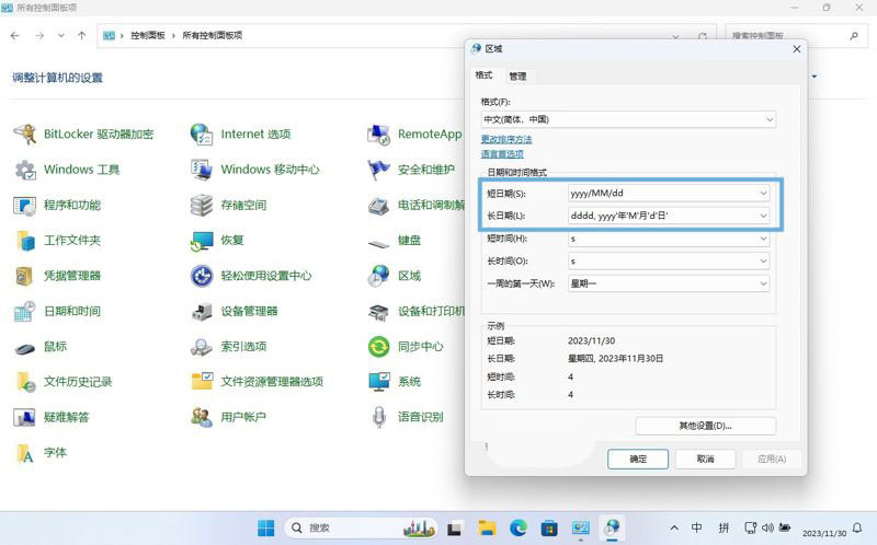 Win11系统自定义日期格式的三种方法技巧