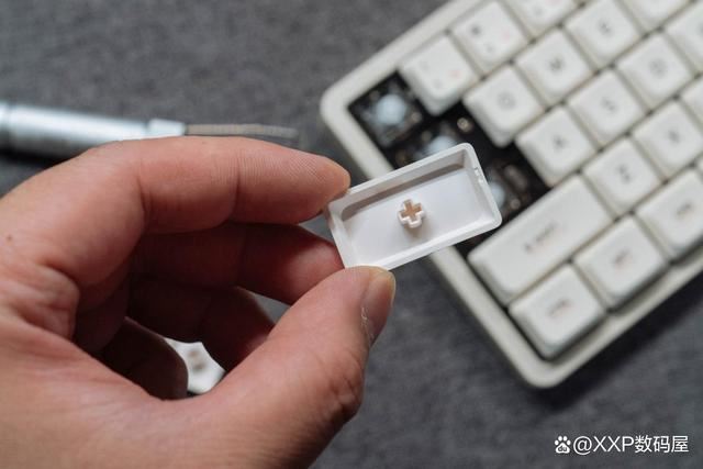 标配高含量PBT材质+抗污涂层的键帽,字符非常清晰,不易脱色磨损,做工细致。以前ABS材质的键帽基本上大半年就出现打油了,而且字符脱色。键帽顶部还是凹形设计,更符合指腹的人体工学,敲击起来贴手Q弹。