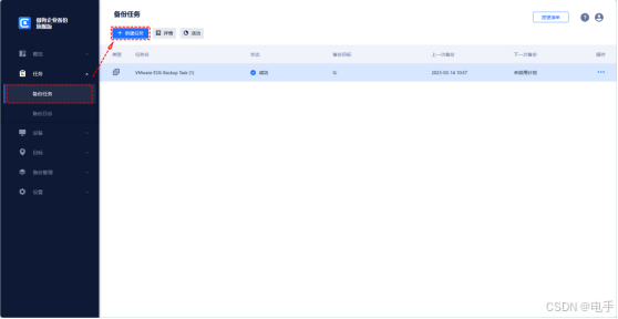 4. 新建任务:点击“任务”>“备份任务”>“新建任务”。