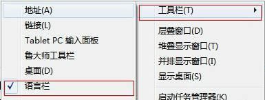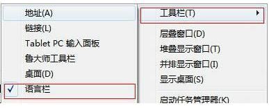 那就用鼠标在任务栏任一空白处单击一下右键,然后选择“工具栏——语言栏”即可。