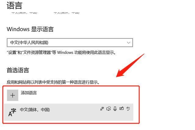 5.在弹出的界面里找到“首选语言”,点击“添加语言”: