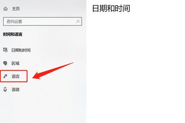 4.进入“时间和语言”选项以后,点击弹出界面左侧的“语言”: