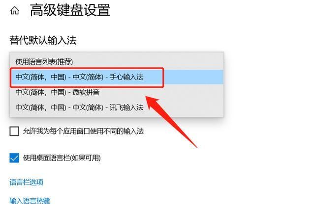 9.点击进入“高级键盘设置”选项以后,选中自己下载的输入法: