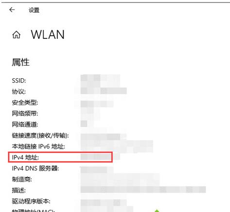 3.在“WLAN”窗口中的IPv4地址,即可查看到自己电脑的IP地址。
