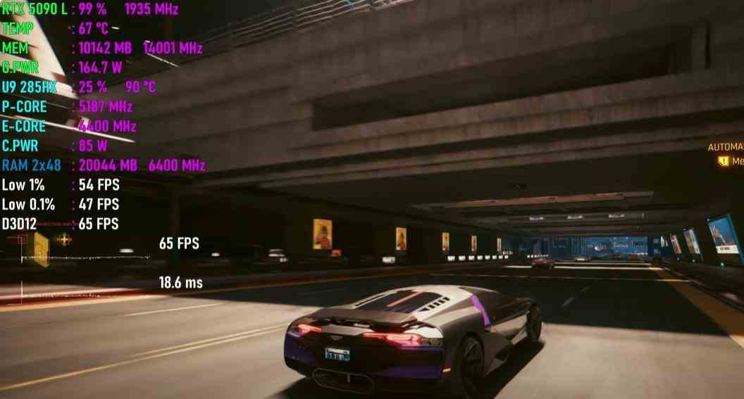 这就是Core Ultra 9 285HX+GeForce RTX 5090 24GB这套顶配笔记本电脑的实际游戏性能表现。总体来说,和GeForce RTX 5090 32GB桌面版相比,差距巨大,看惯了GeForce RTX 5090 32GB桌面版的表现,很难接受GeForce RTX 5090移动版的表现。