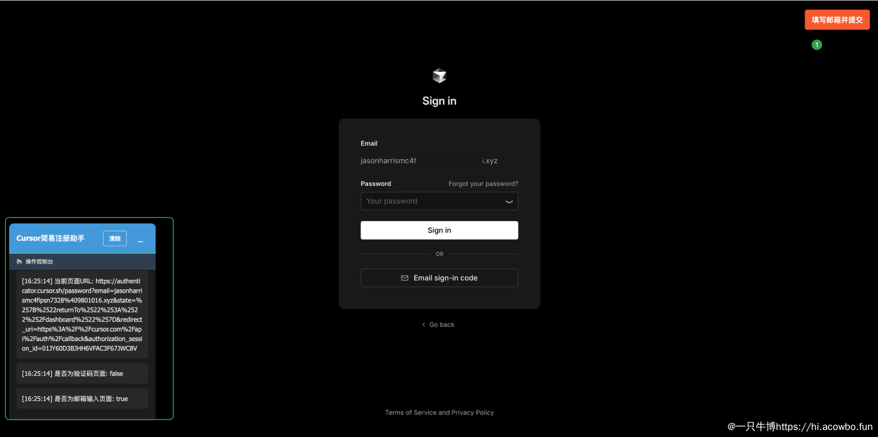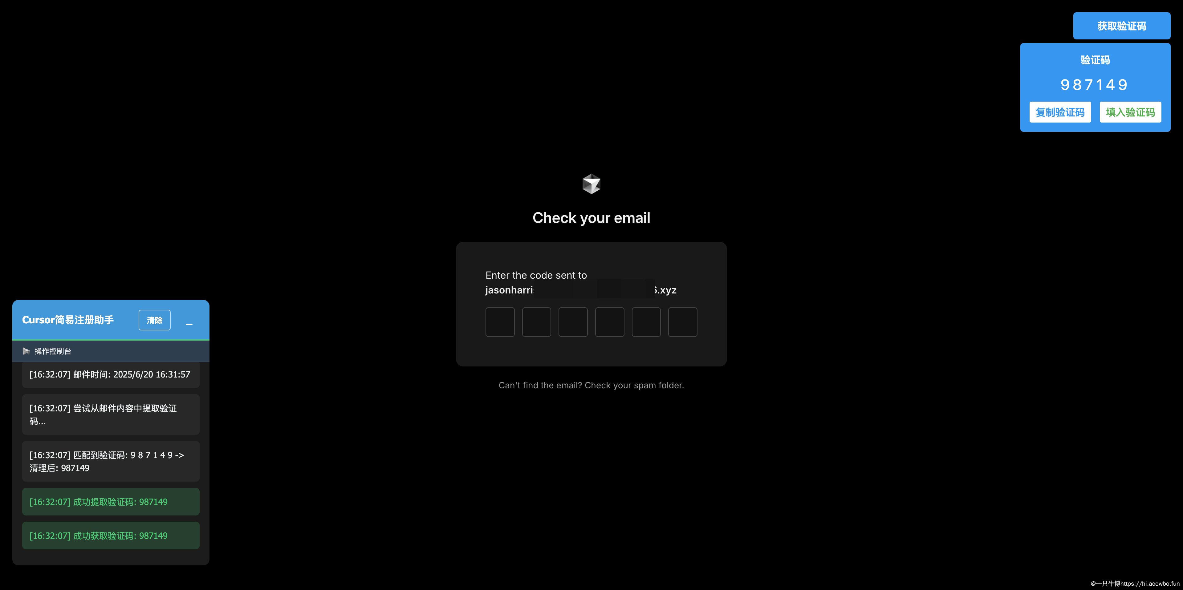 在使用Cursor这款基于AI的编程工具时,注册流程需要通过邮箱验证码来完成。这个过程虽然简单,但经常会遇到验证码获取不及时、填写不便等问题。为了解决这些痛点,我开发了一个简易的Tampermonkey脚本,可以帮助用户自动填写邮箱、获取验证码并填入,大大提高注册效率。
