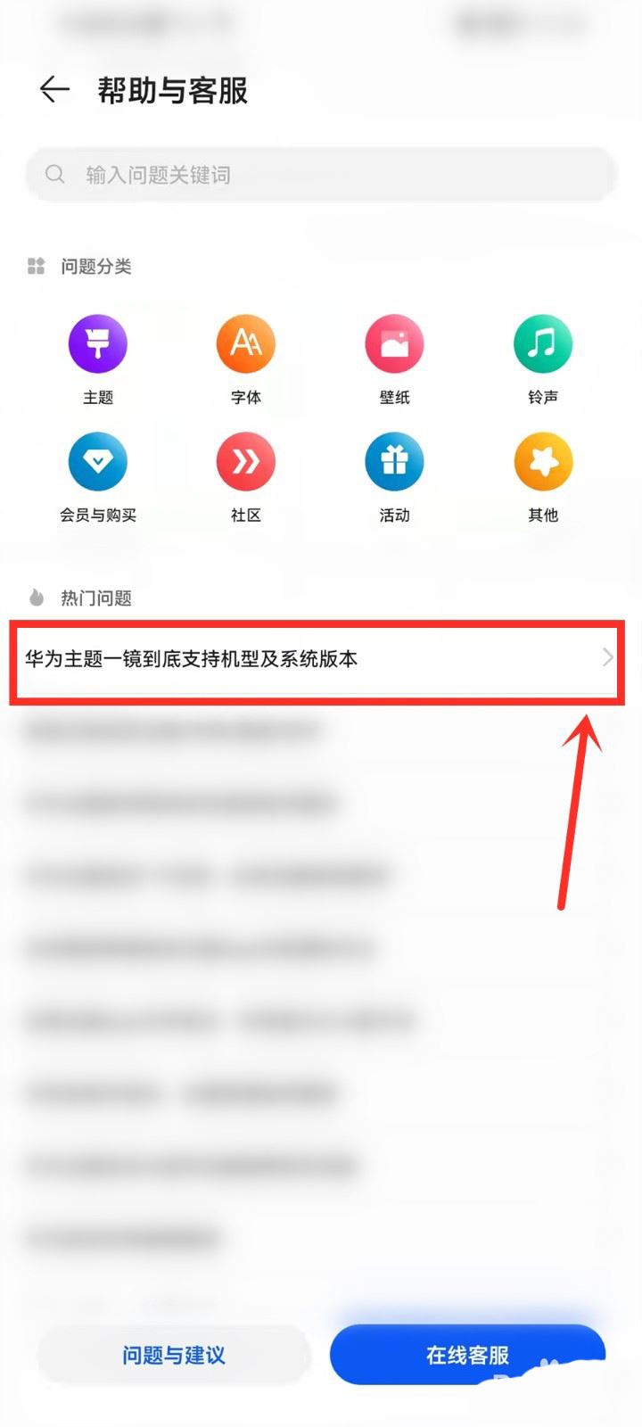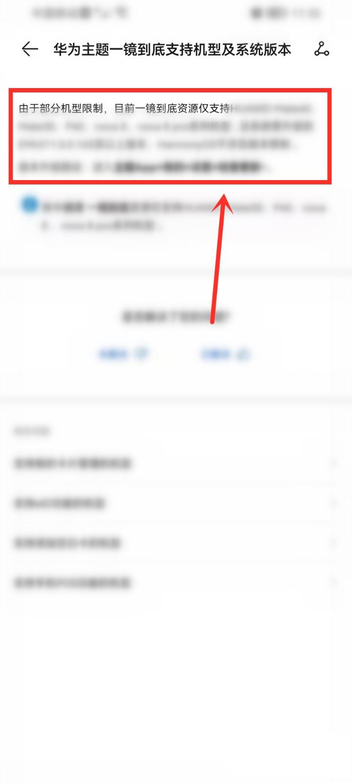 点击【华为主题一镜到底支持机型及系统版本】。