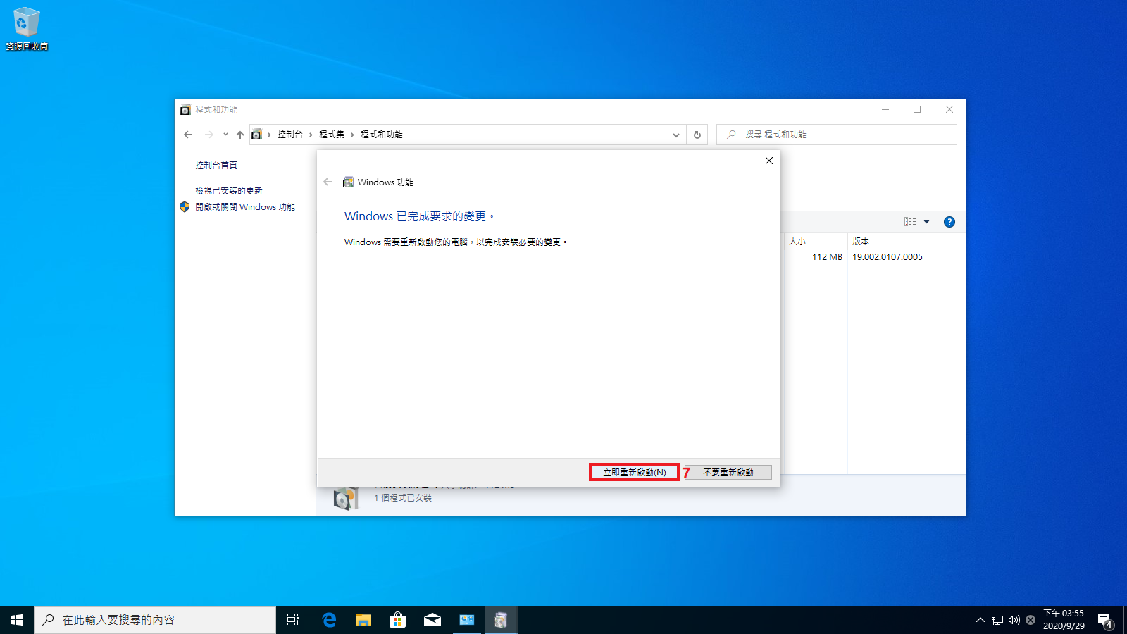 5. 等待Hyper-V功能安装完成后点击[立即重新启动]