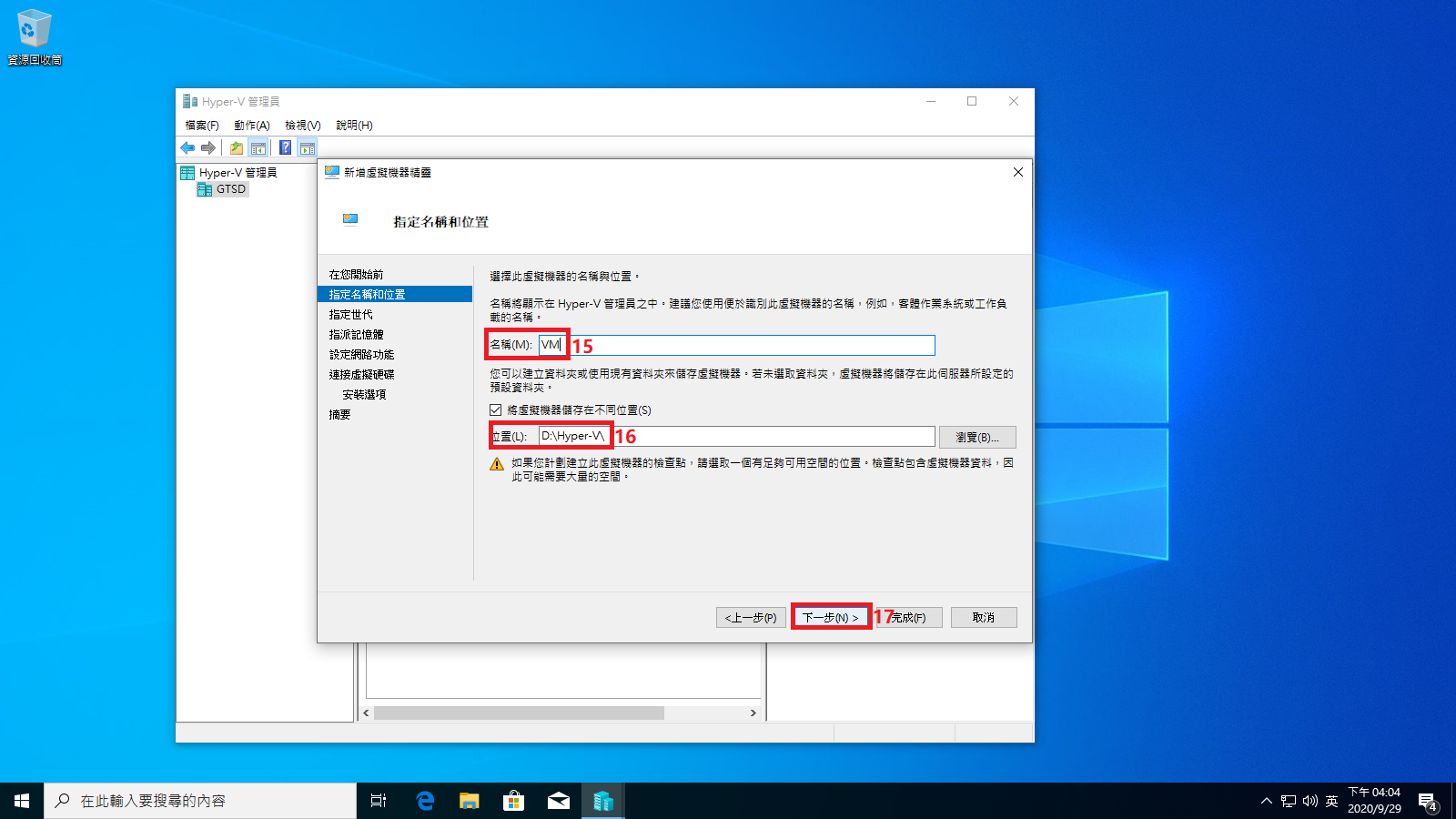 14. 设置虚拟硬盘的名称,位置,大小后点击下一步
