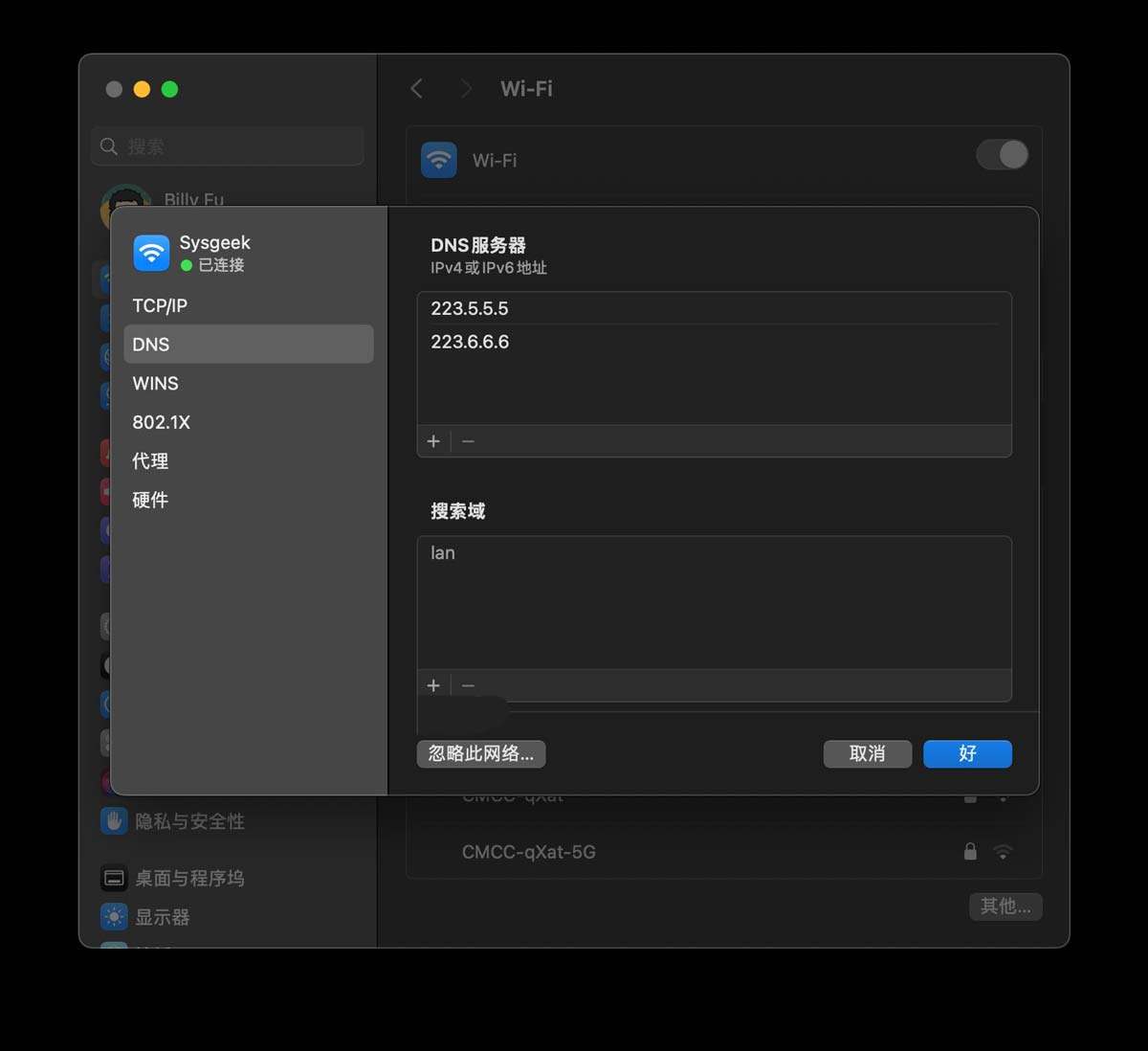 你可以将 Wi-Fi 或以太网配置成公共 DNS,这样有助于 macOS 解析到最佳服务器,操作步骤如下: