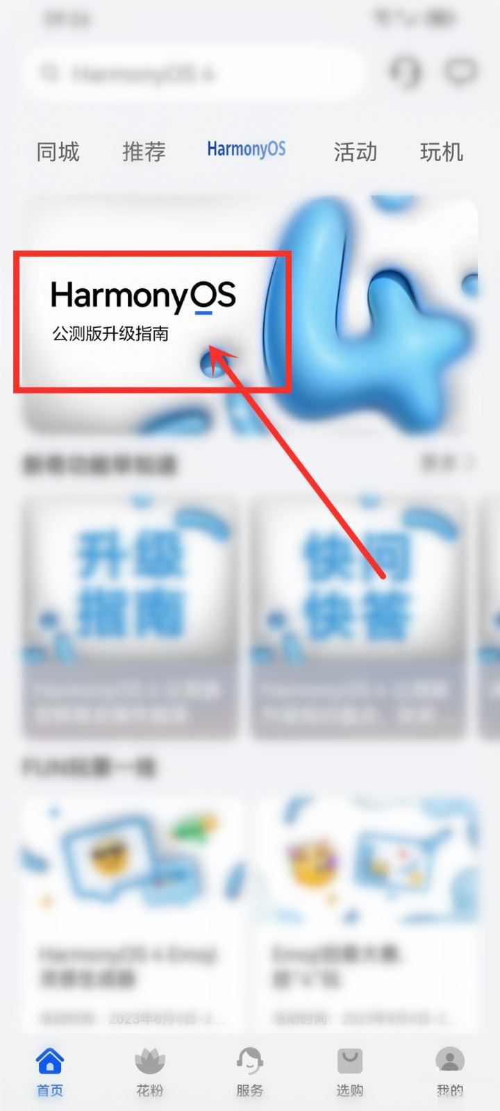 进入鸿蒙4.0专栏,点击“如何升级HarmonyOS 4”选项。
