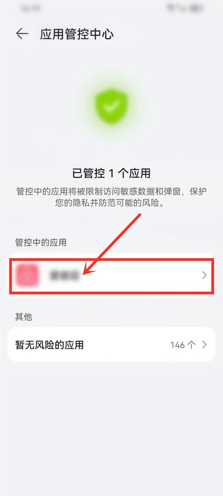 进入应用管控中心,点击管控的应用。