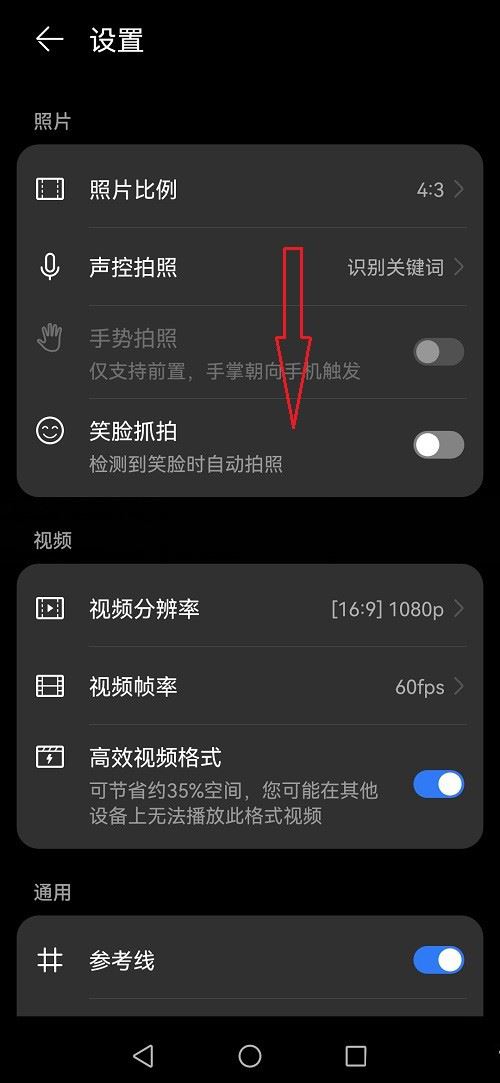 进去相机设置界面之后,然后下滑界面到底部