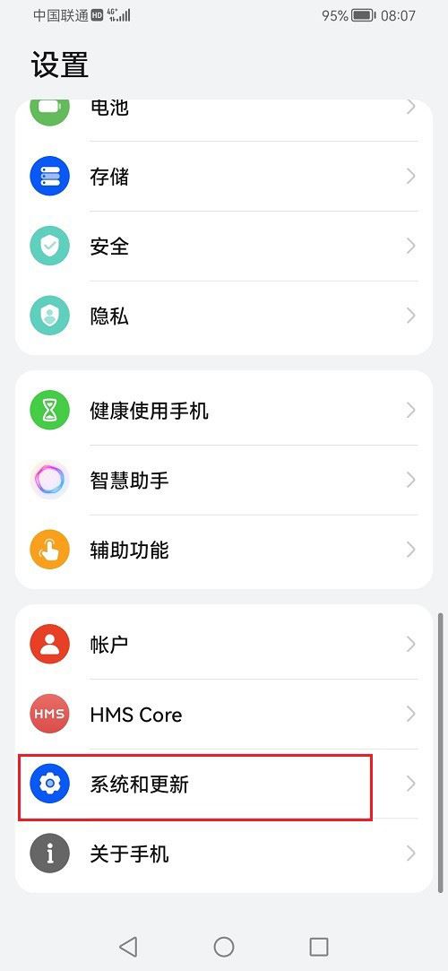 进去鸿蒙系统设置之后,然后点击系统和更新