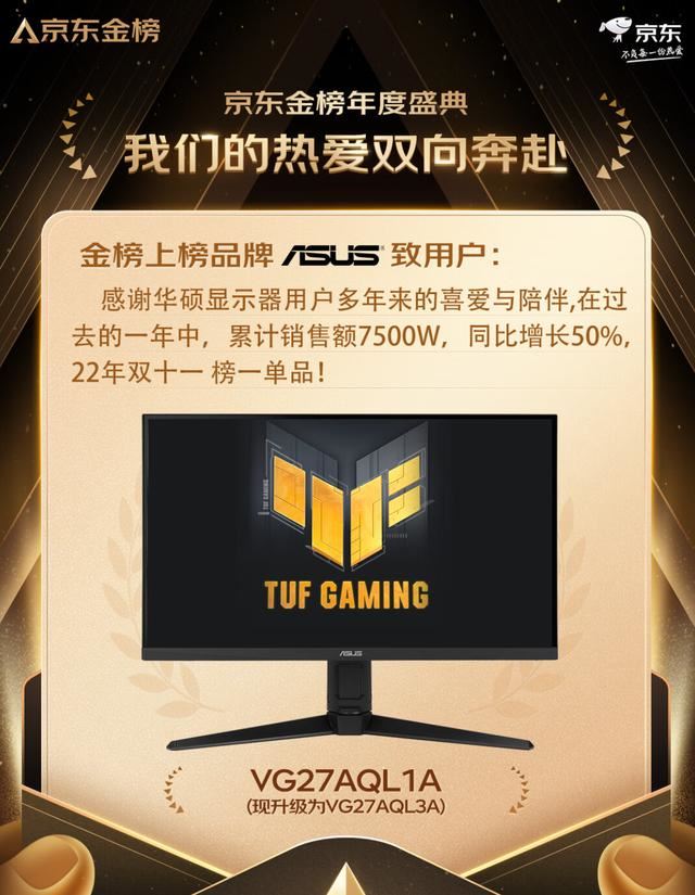 销量会是一款产品性价比优劣的一个良好评价标准。华硕VG27AQL3A电竞显示器的前代型号VG27AQL1A就曾经以累计7500w的销售额成为2022年的双十一榜一单品。升级后的VG27AQL3A会有怎样的表现呢?我们不妨一起进入正文看看吧~