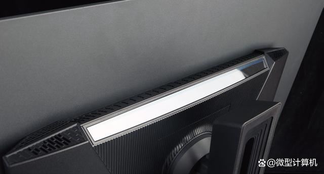 从我多年评测过的显示器来看,电竞显示器通常会在外观设计上重点操刀,比如背部设计各种花纹、电竞灯效等。通常而言,像技嘉这类一线品牌的显示器会更注重产品细节上的打磨,AORUS FO32U2P可以说是一款结合科技美学和人体工程学的产物。它在背部的外观设计上并没有一味地追求所谓“酷炫”的设计,而是在运用线条美学的基础上融合极简设计,所以显示器整体看上去并没有花哨的感觉。另外,它在显示器背部凸出的部分顶端和下方设计有灯效,让显示器更有科技感。