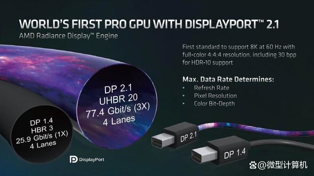 这种超高的带宽能够支持更高的分辨率和刷新率,让用户在使用高端显卡时,能够充分发挥其性能。显示器在处理大量数据时,能够保持稳定的传输速度,减少延迟和卡顿现象,从而确保用户的每一次操作都能迅速响应。另外,为了能更好地体验DisplayPort 2.1 UHBR 20带来的无损画质输出,建议搭配AMD Radeon RX 7000系列显卡使用,因为目前只有该系列显卡支持DisplayPort 2.1输出(RX 7600显卡是否支持 DisplayPort 2.1取决于AIB合作伙伴的设计),NVIDIA GeForce RTX 40系列显卡仅支持DisplayPort 1.4。