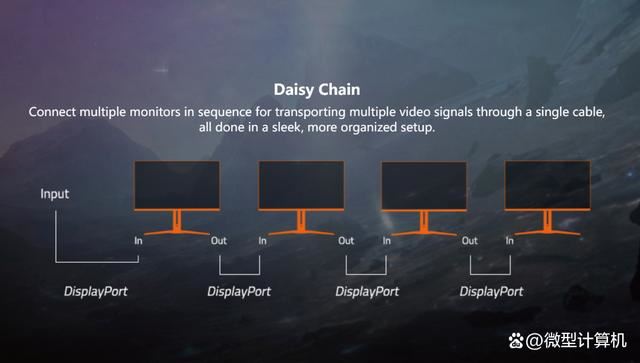 值得一提的是,AORUS FO32U2P其中的一个DisplayPort 1.4接口支持输出模式,实现菊花链连接。也就是说它能按顺序连接多台显示器,不需要每个显示器直接连接到主机或笔记本电脑,而是通过DisplayPort将多个显示器串联到单个主机。由于它的输出接口是DisplayPort 1.4,因此使用多台AORUS FO32U2P在串联输出模式下最高可输出4K@120Hz(支持DSC)画面。