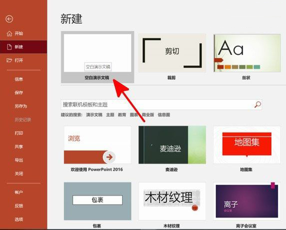 第二步:接着,点击“空白演示文稿”,一个空白文稿就建成了。
