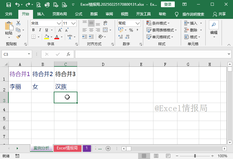 合并后放置数据的新列及标题我们可以命名为“执行合并”。