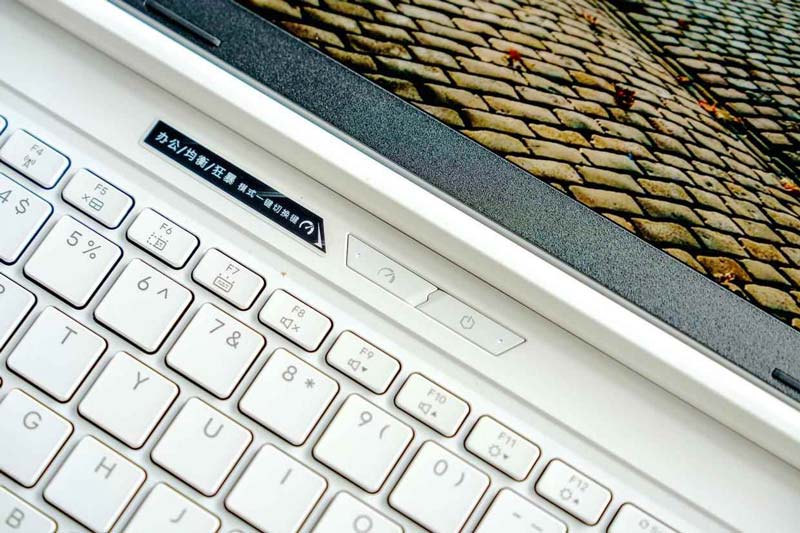 在电源按键左侧是机械革命标志性的运行模式切换按钮,通过它可以在办公、均衡、狂暴和自定义多种模式间一键切换,满足不同工况是对功耗与续航时间的需求。