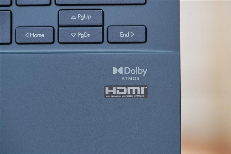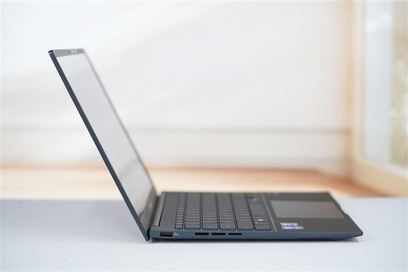 机身右侧有一个HDMI 2.1 TM DS 接口,2个40Gbps的雷电4接口,一个3.5mm耳麦合一接口。
