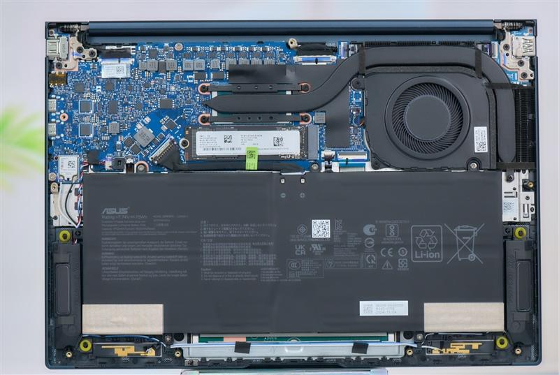 处理器功耗极低,因此灵耀14 2025只设计了单风扇单热管的散热系统。