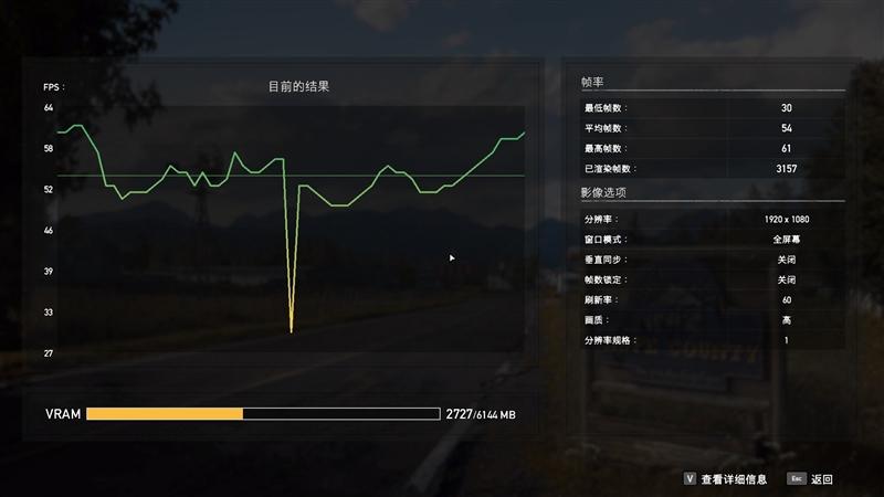 1080P分辨率帧率为54FPS。
