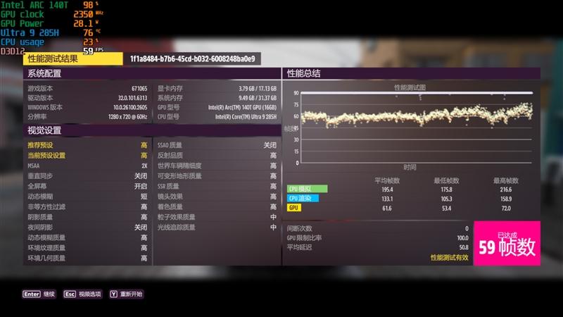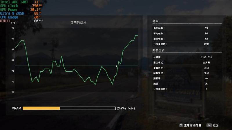 720P分辨率则能跑到59FPS。