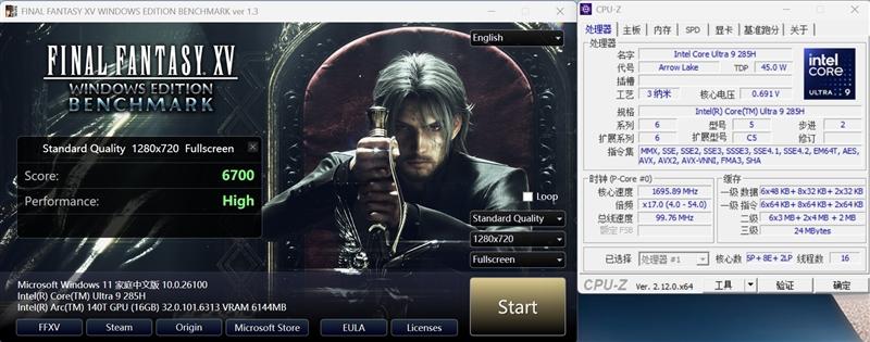 核显性能测试:相比Arc 140V略有差距