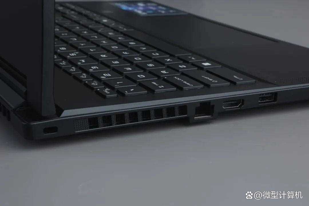 微星绝影16 AI+锐龙版的接口分布在机身左右两侧,这台机器配备一个USB4接口、两个USB-A 3.2 Gen2接口、一个HDMI 2.1接口、一个RJ-45网线接口以及一个3.5mm音频接口(这台机器的电源适配器为方形接口)。其中HDMI 2.1接口支持最高8K@60Hz视频输出,USB4接口同样支持DP视频输出,也就是说有需求的用户可以用这台机器轻松组建多联屏,无论是对于创作还是玩游戏,这样的接口配置都是足够的。