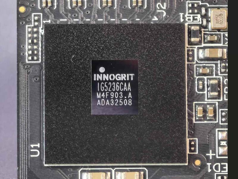 主控芯片采用的是英韧 IG5236CAA,这是一款基于 12nm FinFET CMOS 制造工艺的高端主控,支持 PCIe Gen4 x4 接口和 NVMe 1.4 协议,具备出色的性能和稳定性,常见于固态品牌的一些高端产品中。
