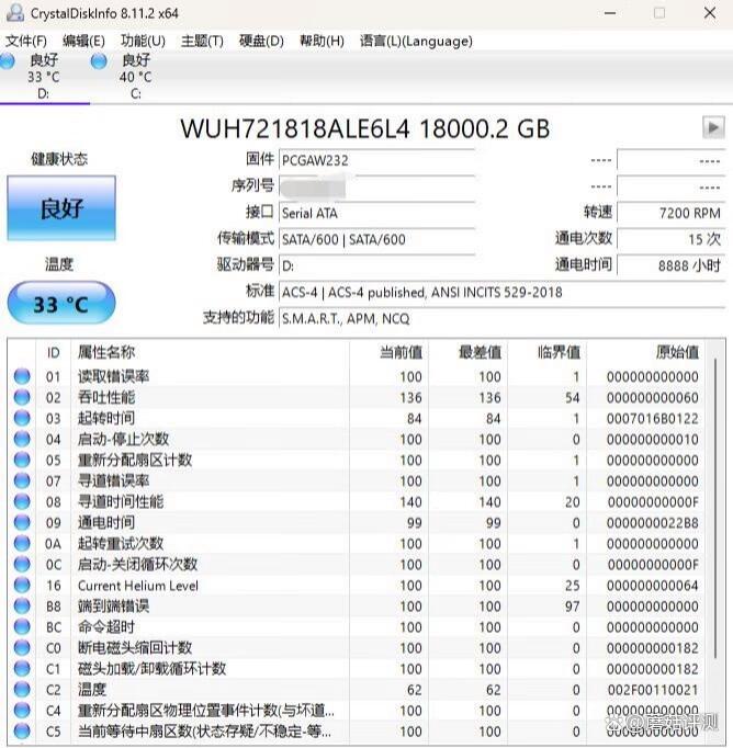 这块硬盘,标称容量18TB,实际可用容量在16.3TB左右。