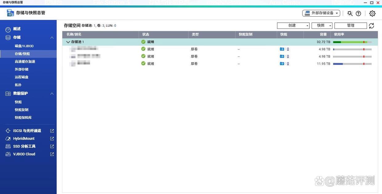 之前的存储池的容量使用情况,另外在右上角,有一个管理按钮。