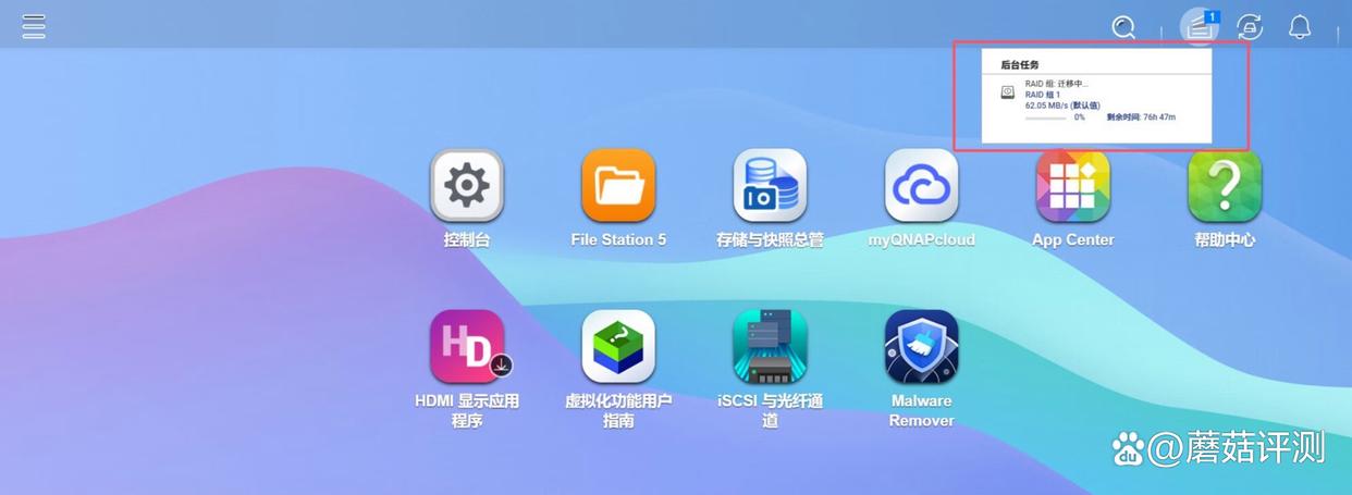 在NAS后台任务菜单中,可以看到正在进行的数据迁移任务,以及迁移速度。