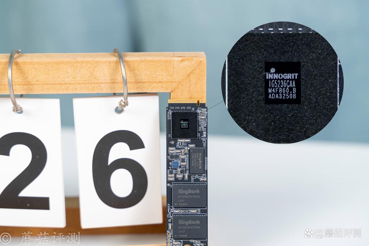 固态硬盘的主控芯片用的是英韧的IG5236,这是一款定位高端的PCIe 4.0主控芯片,采用12nm工艺制程,峰值功耗仅3W,采用外置DRAM缓存设计,标配8个NAND通道,标称最高顺序读写速度可以去到7400MB/s、6700MB/s,性能十分出众。