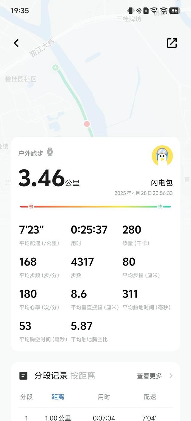 需要注意的是,在运动前需要确保佩戴位置正确,尽量不要有过松或者过紧的情况,不然数据就会有差错。就像是这一次的跑步,在专业手表上的平均心率为 167,但因为 vivo WATCH5 佩戴不正确,出现了平均心率过高的情况。