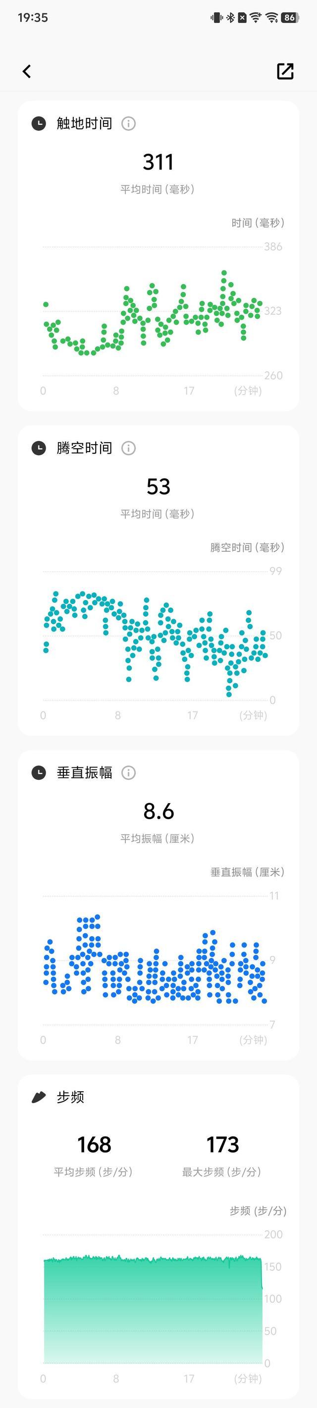重新测试后看看其他的数据,vivo WATCH 5 带来触地时间、腾空时间、垂直振幅等数据,不仅可以矫正跑姿,降低跑步伤害的风险,还能指导提高跑步成绩。如果在燃脂跑步模式上,vivo WATCH 5 还增加了一个燃脂建议心率,也就是最大心率的 60%-80%,在这个区间内可以达到最高的燃脂效果,手表会提醒你保持在这个心率区间,帮助我们更高效地进行跑步燃脂。