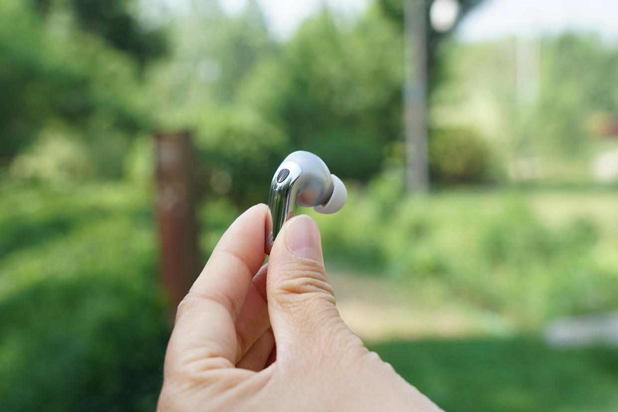作为降噪耳机其采用三麦克风拾音设计,分别在单元顶部、单元背部以及耳机短柄底部,多方向分布,检测环境音也更灵敏。并且在耳机短柄触摸操控区域还做了一个手指能感知的平面切割设计,更方便盲操作。