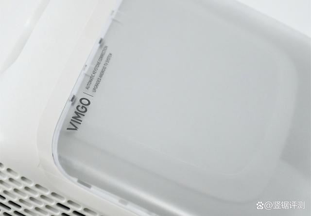 机身正面就是微果V7 Plus的投影镜头了,采用了全玻璃镜头,而镜头旁边则是用于自动对焦的激光TOF,结合搭载的第二代鹰眼视觉算法以及内置的六轴陀螺仪、AI图像矫正算法,让微果V7 Plus相较于那些使用Camera摄像头自动对焦的智能投影仪,能实现更快速的无感对焦。