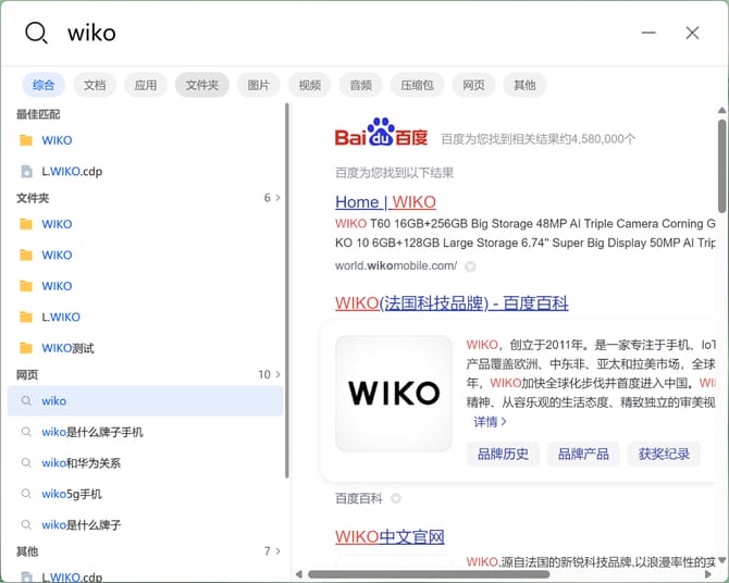 除了可以搜索本地文件,「智慧搜索」还包括了网页内容的查找,无需单独打开浏览器就能在「智慧搜索」的结果框里显示网页内容,是不是就方便得多了。