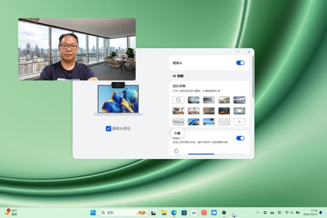 控制中心的摄像头和音频功能,在 AI 技术的加持下,带来视频会议或语音通话体验的提升。对于随时随地都可能被拉上视频会议的职场人来说,如果你不想暴露所处的环境,那么该摄像头功能可就帮上大忙了。打开控制中心的摄像头选项,这里可以选择摄像头预览,然后在「AI慧眼」的虚拟背景里选择一个合适的背景,既美观也避免了环境的尴尬。